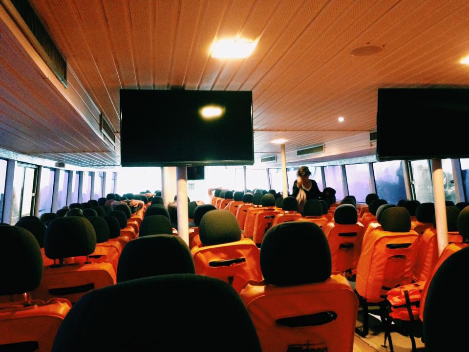 จากนั้นก็นั่งรถทัวร์ไปขึ้นเรือข้ามเกาะ งงมั้ยย 555 นั่งเรือออกจากเกาะประมาณ 1 ชม. กว่า วิวตอนพระอาทิตย์ใกล้ตกดินคือสวยมาก