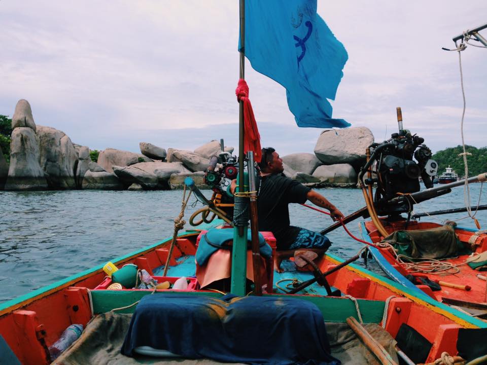 เรานั่งเรือโต้คลื่นไปเกาะโคตรรรรรรมันส์ ช่วงนั้นฝนปรอยๆ คลื่นแรง เรือเร็ว เสี่ยงตายมาก แต่ก็สนุกดี5555 ก่อนถึงเกาะ ลุงใจดีให้เราดำน้ำดูประการังประมาณ 20 นาทีด้วย (ประการังสวยมากกกก แต่เราดันไปเจองูทะเลหรือปลาไหลไฟฟ้าก็ไม่รู้ รีบว่ายหนีกันใหญ่เลย แล้วก็ไม่ดำน้ำต่ออีก 5555)