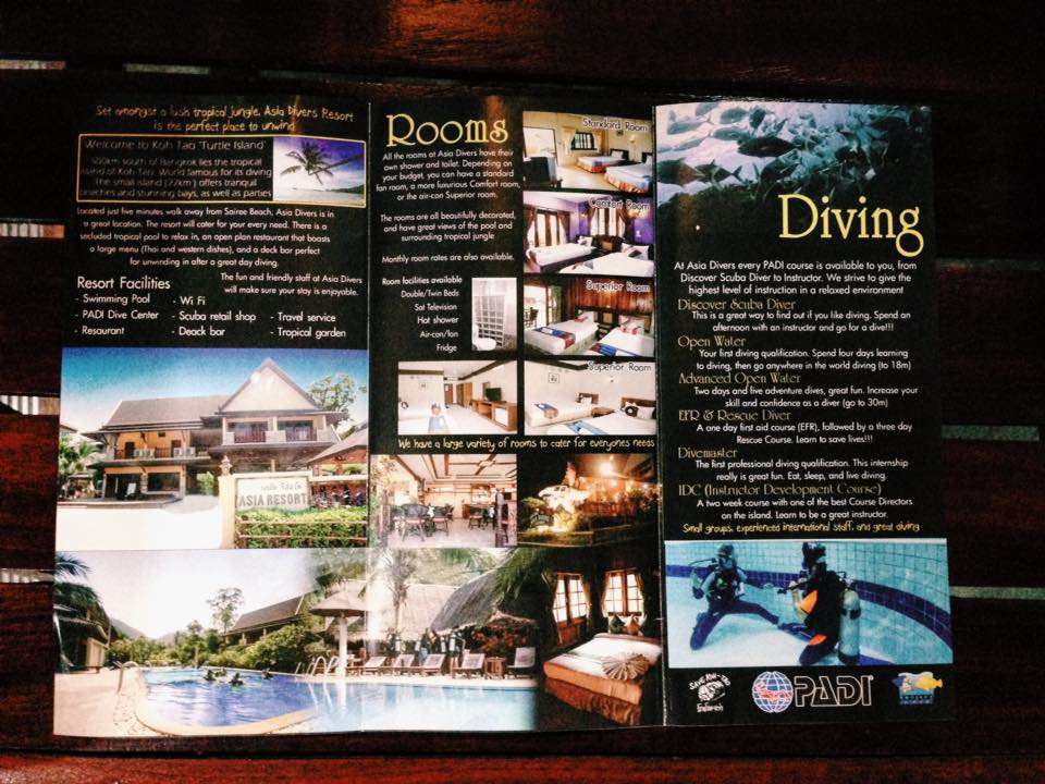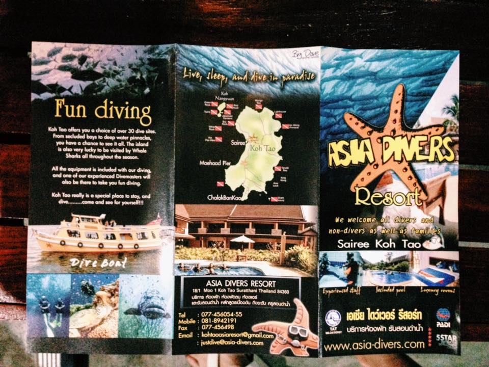 นี่คือโบชัวร์ของทาง Asia Divers เรากับเพื่อนกะจะไปทัวร์ one day trip เที่ยวรอบเกาะ ดำน้ำ 600 บาท