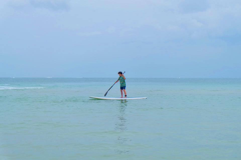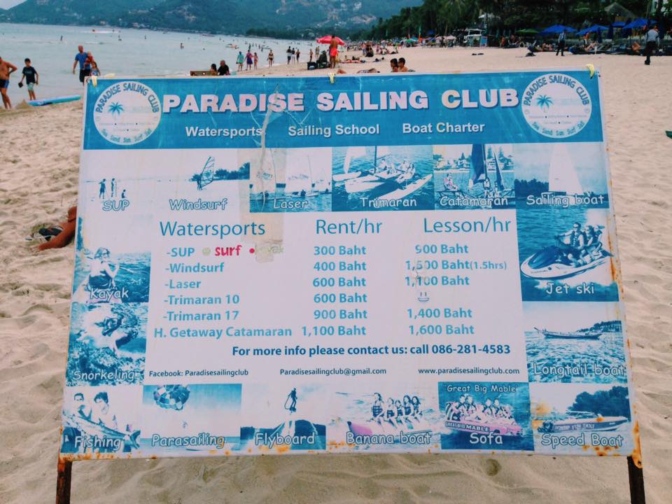 แล้วเราก็เดินมาเจอป้ายนี้เข้า! เลยตกลงกับเพื่อนว่าจะเล่น standing board กับ พายเรือคายัค อย่างละครึ่ง ชม.