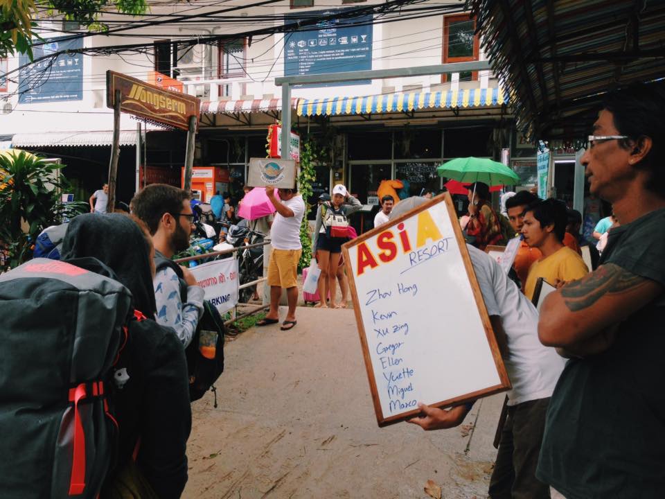 นี่คือป้ายที่พักเรา Asia Resort เค้าจะเขียนชื่อคนที่จะมาพักในกระดาน และก็จะขับรถไปส่งเราเข้าที่พัก ทางไปที่พักจะเป็นทางขึ้นเขา ขรุขระหน่อยๆ