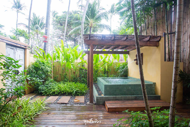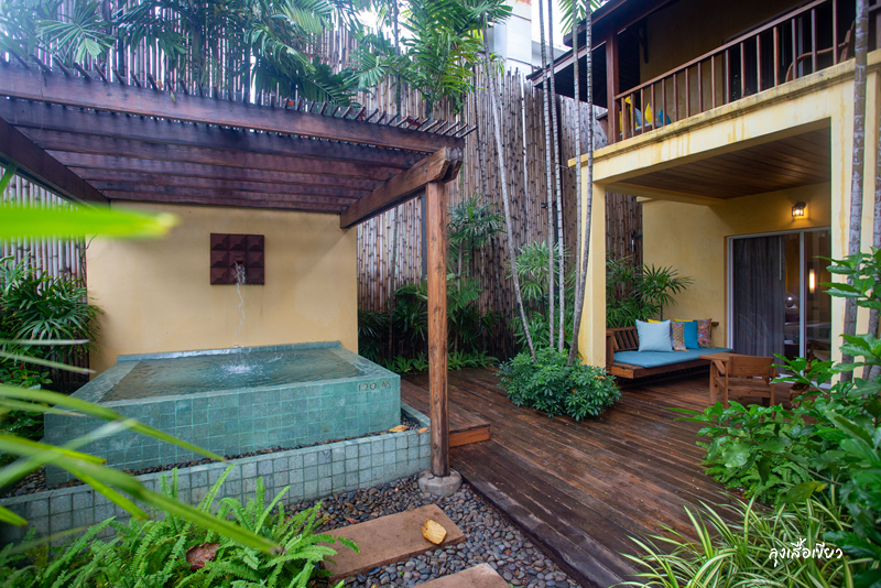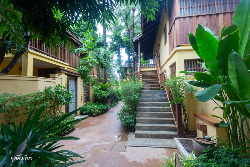 ถึงแม้ว่าบรรยากาศด้านนอกของบุรี รสา วิลเลจ สมุย จะดูคึกคัก แต่พอได้ก้าวเท้าผ่านซุ้มประตูไม้เข้ามายังด้านในรีสอร์ท บอกได้เลยว่าเหมือนหลุดเข้ามายังอีกสถานที่หนึ่งเลย เพราะว่าเงียบสงบมากๆ ครับ