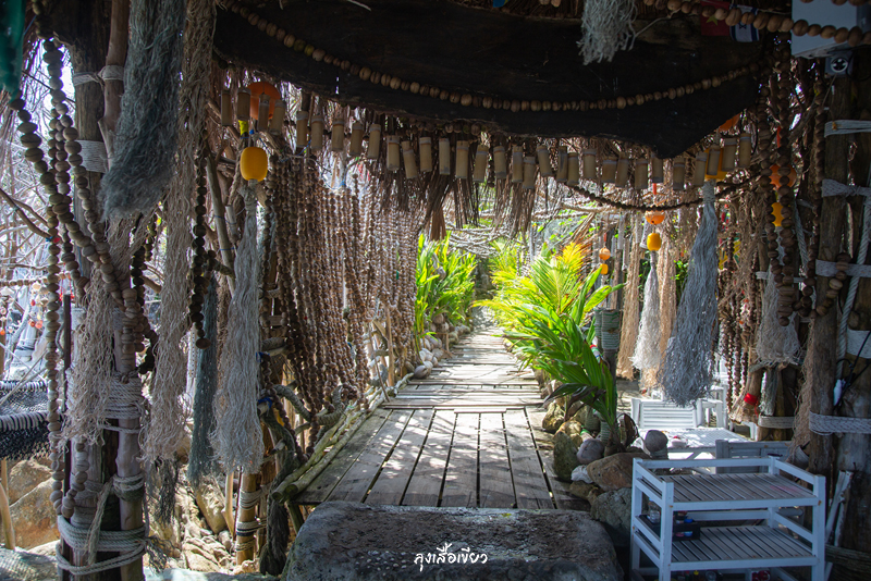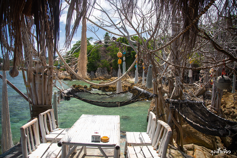 เมื่อเดินเข้ามาจนสุดร้าน จะมีศาลาซึ่งอยู่ที่ปลายแหลม จุดนี้เป็นจุดที่มีนักท่องเที่ยวมาใช้บริการเป็นจำนวนมาก บ้างก็มานั่งกินลมชมวิว นอนเปลญวน บ้างก็กระโดดน้ำเล่นกันอย่างสนุกสนาน ดีที่ผมมาถึงก่อนนักท่องเที่ยวกลุ่มอื่นจะมาถึง เลยได้ถ่ายรูปเก็บบรรยากาศโดยรอบแบบปราศจากนักท่องเที่ยวมาให้ได้ชมกัน สำหรับผมไม่ได้มารอชมพระอาทิตย์ตกที่นี่ เลยถือโอกาสมาสั่งเครื่องดื่มเย็นๆ แก้ร้อน เรียกความสดชื่นได้ดีเลยทีเดียวครับ