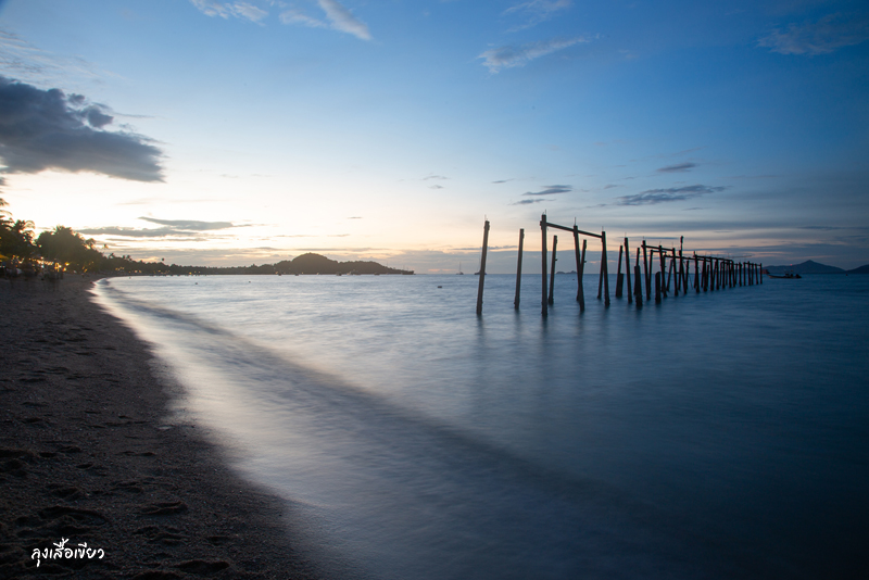 หาดเฉวงในวันธงแดง คลื่นลมแรง น้องพนักงานบอกว่าในวันที่ฟ้าเปิด คลื่นลมสงบ ชายหาดจะสวยมากครับ