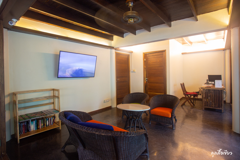 สำหรับด้านขวามือ ซึ่งอยู่ฝั่งตรงข้ามกับลอบบี้ จะเป็นพื้นที่ให้แขกได้นั่งรอ Check in ในกรณีที่มีแขกมา Check in พร้อมๆ กันหลายคนครับ