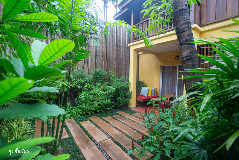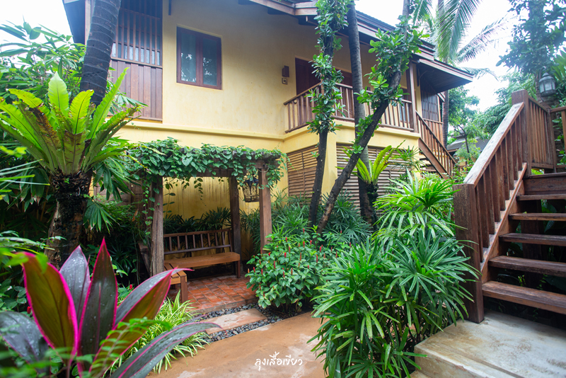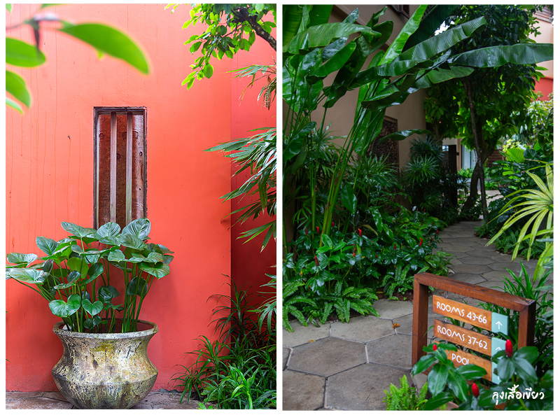 ภายในรีสอร์ทร่มรื่นมาก มองไปทางไหนก็เห็นแต่สีเขียวของพืชพรรณไม้ดอกไม้ประดับมากมาย เห็นแล้วก็สดชื่นจริงๆ