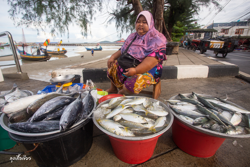 ผมมาต่อแถวๆ ท่าเรือหน้าทอน มองเห็นเรือประมงจอดอยู่มากมาย รวมถึงมีแม่ค้านำปลาที่หาได้มาขายกันแบบสดๆ ปลาที่นำมาขายก็มีหลายชนิด ไม่ว่าจะเป็นปลากุเลา ปลากระบอก ปลากระพงแดง ผมเองก็เพิ่งจะเคยเห็นปลากุเลาสดๆ ก็ครั้งนี้ สำหรับใครที่ต้องการปลาสดๆ ไปปรุงอาหาร สามารถมาหาซื้อได้ที่จุดจอดเรือประมงหน้าทอนนะครับ เรือจะขึ้นช่วงเช้าและช่วงเย็น มีทุกวัน (ในช่วงฤดูหาปลา) ยกเว้นวันศุกร์ เพราะเป็นวันหยุดของชาวมุสลิมครับ