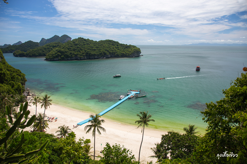 แนะนำเลยว่า ถ้ามาที่เกาะวัวตาหลับแล้ว ไม่ควรพลาดการขึ้นไปยังจุดชมวิวผาจันทร์จรัสนะครับ เพราะจุดชมวิวนี้เป็นจุดสูงสุดของเกาะ ซึ่งเราจะสามารถมองเห็นความงดงามของเกาะน้อยใหญ่ในหมู่เกาะอ่างทอง เช่น เกาะผี เกาะแม่เกาะ (ทะเลใน) เกาะสามเส้า เกาะวัวกันตัง เกาะหินดับและอีกหลายๆ เกาะ ที่ทอดตัวเรียงรายเป็นทางยาว บนผืนน้ำสีเขียวมรกตได้แบบเต็มๆ ตา รับรองว่าคุ้มค่าเหนื่อยแน่นอนครับ