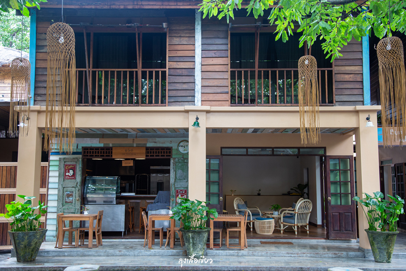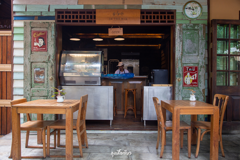 ดูห้องพักกันแล้ว เราไปสำรวจรอบๆ รีสอร์ทกันบ้างดีกว่า เริ่มกันที่บริเวณด้านหน้ารีสอร์ทเลยครับ อย่างที่บอกไปในตอนแรก ปีกขวาจะเป็นลอบบี้ ส่วนปีกซ้ายจะเป็นคาเฟ่เล็กๆ ที่ชื่อ In The Mix ตกแต่งคล้ายๆ กับร้านกาแฟสมัยโบราณเก๋ๆ ที่ให้บริการทั้งขนมอบ และพิซซ่าแบบ Homemade ครัวแบบเปิดโล่ง สามารถมองเห็นเชฟกำลังทำขนมได้ด้วยครับ