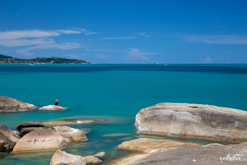 คนขับเรือพาผมไปยังเกาะราบเป็นเกาะแรก ใช้เวลานั่งเรือประมาณ 40 นาที เกาะราบอยู่ทางตอนใต้ของเกาะสมุย เมื่อมาถึง เราต้องเสียค่าขึ้นเกาะคนละ 50 บาท และจะได้รับน้ำดื่ม 1 ขวดครับ