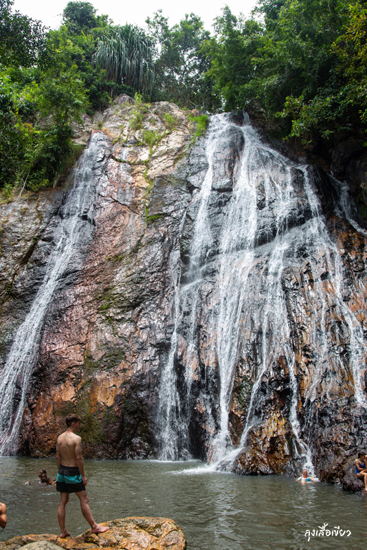 ถึงแม้ฝนจะเพิ่งหยุดตกไปไม่นาน แต่รับรู้ได้เลยว่าคลื่นทะเลค่อนข้างสูง เพราะเรือเฟอร์รี่มีอาการสู้คลื่น นั่งเรือประมาณ 1.30 ชั่วโมง เรือก็มาถึงที่ท่าเรือหน้าทอนในเวลาประมาณ 12.30 น. เมื่อลงจากเรือแล้ว ฝนเริ่มกลับมาตกพรำอีกครั้ง ตอนแรกผมยังนึกว่าจะต้องเดินออกมาที่ถนนใหญ่เพื่อไปรอคิวรถสองแถว แต่เมื่อเดินขึ้นจากเรือไม่ถึง 50 เมตร ก็เห็นมีแท็กซี่มารอรับผู้โดยสารมากมาย พอเดินผ่านรถแท็กซี่ออกมานิดเดียว ก็พลันเหลือบเห็นคิวรถสองแถวจอดรอรับผู้โดยสารอยู่แล้ว สอบถามคนขับเพื่อให้แน่ใจว่าผ่านหาดเฉวงหรือไม่ (ที่ตั้งของที่พักผม) คนขับพยักหน้า เลยสอบถามราคาให้เรียบร้อยก่อนขึ้นซะก่อน สรุปว่าค่าโดยสารอยู่ที่ 80 บาทครับ