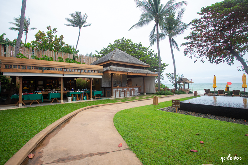 หลุดจากโซนห้องพัก จะมีอีกหนึ่งประตูที่เมื่อก้าวข้ามไป จะเป็นพื้นที่ของสปา ห้องอาหาร สระว่ายน้ำรวม และชายหาดครับ