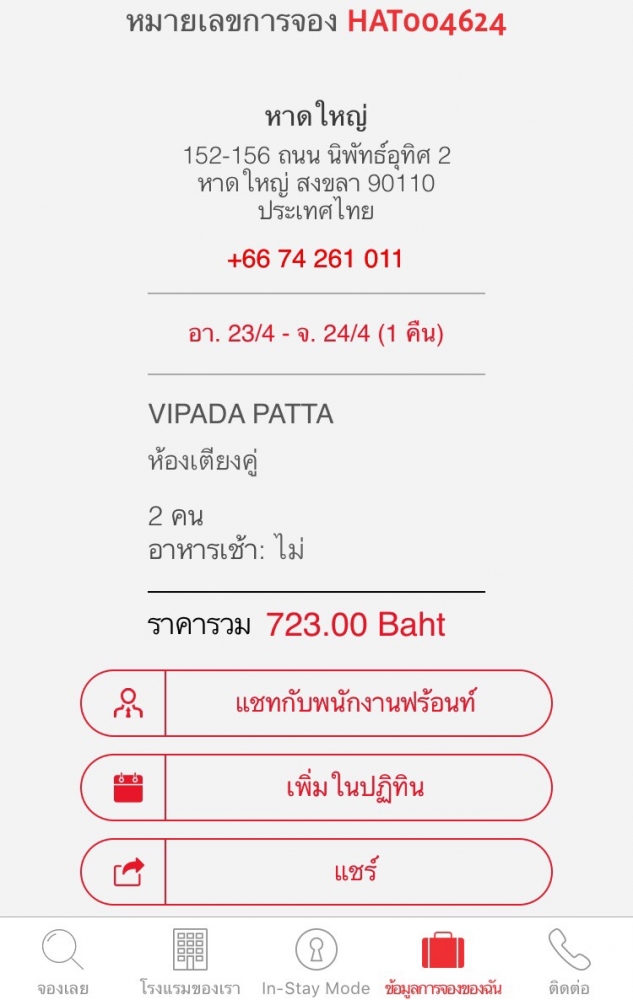 • โรงแรมพักที่หาดใหญ่จองผ่านเว็บไซต์ของโรงแรม