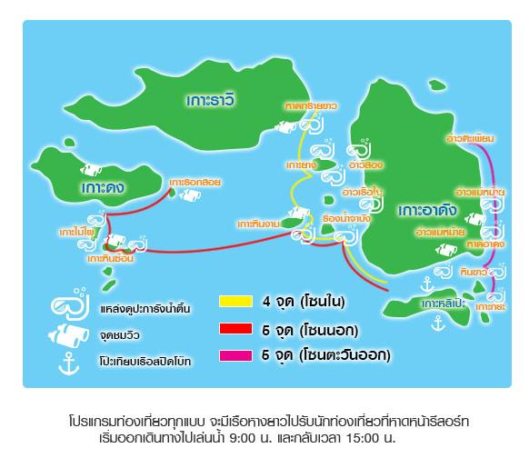 • รถตู้รับส่ง + เรือเฟอรี่ + เรือหางยาวดำน้ำ