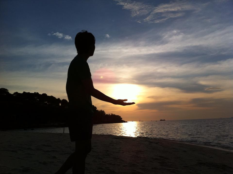 เนื่องจากวันแรก เสียเวลากับการเดินทางไปพอสมควร จึงได้แต่เล่นน้ำหน้าที่พัก และถ่ายภาพ เป็นอีกภาพที่ชอบเพราะแสงสวยยามอาทิตย์ตกดินกับน้องชาย