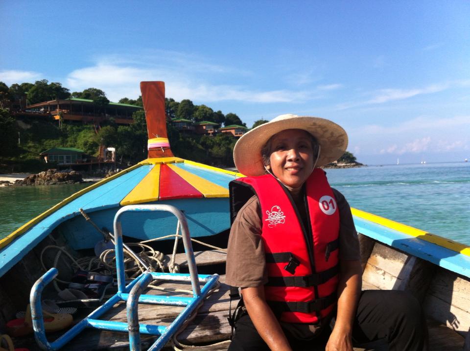 วันที่สอง เรียกว่าเป็นวันทำกิจกรรมเลยก็ได้ เพราะดำน้ำทั้งวัน ตะลุยตามจุดต่างๆ ราว 7 จุด เนื่องจากไปกับที่บ้าน มีภาพคุณแม่มาฝากด้วย ถึงจะมีที่ร่ม คุณแม่ขอนั่งข้างนอกดีกว่า รับลม