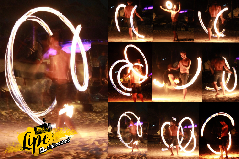 จุดแยกทางระหว่างเราและเพื่อนร่วมทริปเกิดขึ้นหน้าร้านส้มตำ เมื่อเราดันพาขากล้องมาเพื่อตั้งใจจะไปฝึกถ่ายดาวที่อยู่เหนือเกาะหลีเป๊ะ ดาวสวยนะ...แต่ฉันมีเพียงคู่มือจากพันทิป จะถ่ายดาวให้ติดก็แสนยาก ตั้งกล้องจนน้ำขึ้นจวนจะถึงปลายเท้าก็แล้ว ปรับไปปรับมาบ้าบออยู่คนเดียวกระทั่งพอจะได้รูปมาบ้าง แสงไฟวูบวาบเบื้องหลังก็เรียกความสนใจ อา...หาดพัทยาเขามีแสดงไฟ... ไม่ต้องคิดมากเลย เราทำการยกขาตั้งกล้อง หมุนตัวไปหาโชว์ในทันทีจัดแจงถ่ายภาพออกมาจนดึกดื่นกระทั่งเพื่อนสาวตามมารับกุญแจเพื่อจะกลับที่พัก แต่ไหงขากลับเดินเลยมาถึงร้านเตอปิลังก็ไม่รู้สิ สั่งน้ำไปคนละแก้วรวมถึงโรตีสับปะรด รสดีทีเดียวแต่คิวโรตีค่อนข้างนานเพื่อนสาวเลยขอกลับก่อนเพราะทางโฮสเทลแจ้งว่าปิดเวลา 4 ทุ่มตรง ...ที่รอโรตีอยู่นี่ก็ 3 ทุ่ม 59 นาทีแล้วล่ะนะ แต่ไม่เป็นไร พนักงานน่ารัก น้ำดี โรตีอร่อย เดินกลับที่พักไปชิวๆแบบฉิวเฉียด แต่เรื่องการปิดโฮสเทลในเวลา 4 ทุ่ม ถ้าจะกลับดึกกว่านั้นก็มีวิธีการบอกอยู่หน้าทางเข้า แล้วเนื่องจากว่าซัดโกโก้เย็นไปเต็มที่ โรตีเลยเป็นหมันต้องฝากเอาไว้ในตู้เย็นรวมเสียก่อน หากยังจำกันได้ที่เคยบอกเรื่องวิวหลังห้องเป็นเวที เมื่อเราง่วงกันเต็มที่พร้อมนอนให้เต็มตื่น หลีเป๊ะเองก็ตื่นขึ้นมาจากการหลับไหลในตอนกลางวัน ดีดกันไม่หยุดเลยทีเดียว หากไม่เพลียร่างเห็นทีคงไม่ได้หลับได้นอนกันแน่ๆ เดาเอาว่าเพื่อนร่วมห้องก็คงติดอยู่ตรงเวทีไหนสักที่บนเกาะเพราะคลาดกันตลอด