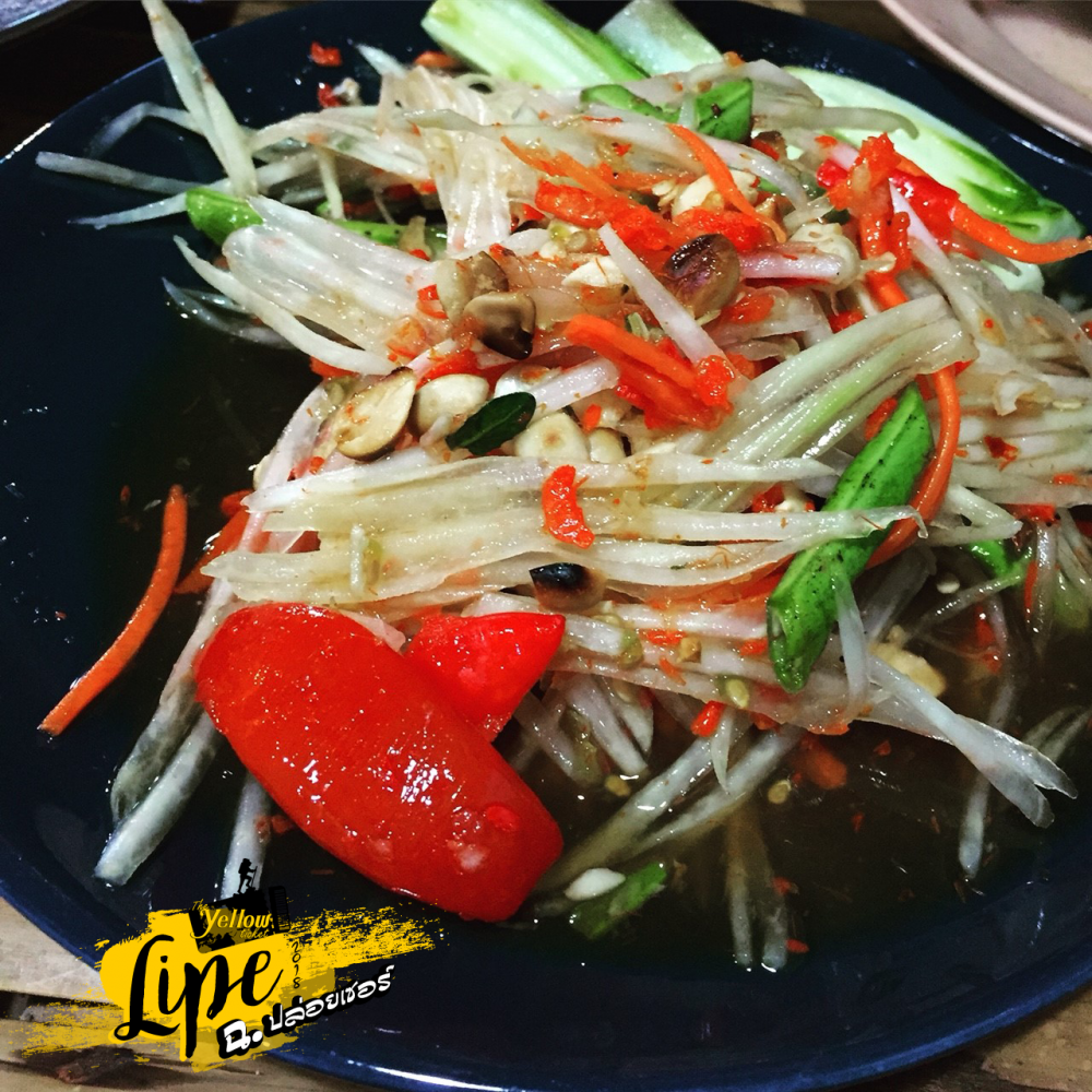 แล้วก็กลับสู่บรรยากาศเดิมๆ เดินออกจากท่า รับเซอร์วิสมายด์จากแม่ค้ารอบทิศ เพียงเสี้ยววินาที เพื่อนสาวไปสบตาเข้ากับส้มตำรถเข็นเจ้าหนึ่งเจ้าเดียว (นี่ก็ไม่รู้เป็นอะไร ส้มตำไปทุกมื้อจริงๆนะ55+) ที่อยู่หลังShopถ่ายรูปขึ้นจาน ไม่พูดพร่ำทำเพลง สั่งส้มตำกันไปกินแถวๆนั้นให้ว่อง รวมถึงจะทำการปิดพิธีเสบียงสดที่พกมาด้วย ใช้เวลาไม่นานเคลียร์ทุกอย่างสะอาดวับก็ต้องรีบรักษาเวลาเช็คอินรถทัวร์รอบสุดท้ายที่ขนส่งหาดใหญ่ แต่ก่อนจากท่าเรือปากบาราไปพื้นที่ในท้องมันยังเหลือ เลยจัดขนมโตเกียวของพี่สาวคนฮาม อัธยาศัยดีไป อร่อย...