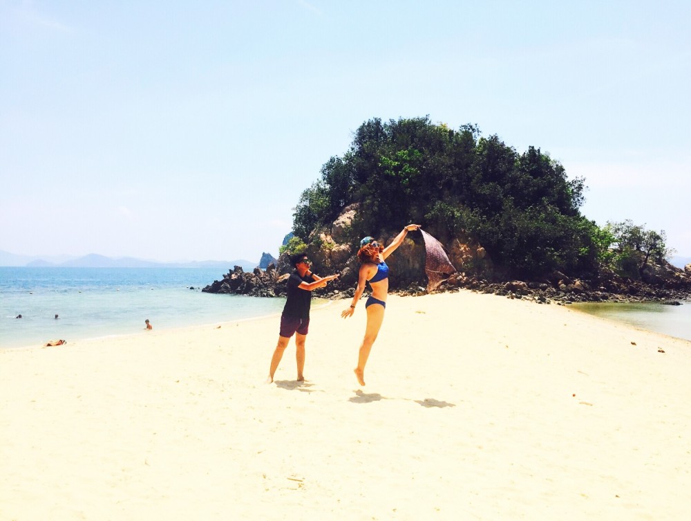 สถานที่สุดท้ายที่เราจะไปคือ เกาะผักเบี้ย ต้องใช้เวลาในการเดินทางประมาณ 20 นาที ค่ะ เกาะผักเบี้ยมีลักษณะคล้ายๆ ทะเลแหวก เพราะ 2 ฟากข้างจะเป็นน้ำทะเล และตรงกลางจะมีเนินหาดทรายให้นักท่องเที่ยวเดินเล่น และอาบแดดค่ะ สำหรับพวกเราเวลาหมดไปกับการถ่ายรูป ลั่นชัตเตอร์รั่วๆ ชนิดที่ว่าการ์ดความจำเต็มแล้วเต็มอีก บ้าคลั่งกับการถ่ายรูปกันสุดๆ แต่ถึงจะเซลฟี่กันขนาดไหนพวกเราก็ไม่ลืมที่จะมีความสุขไปกับการดื่มด่ำความงดงามของท้องทะเลสีน้ำเขียวราวกับมรกต นั่งคุย หยอกล้อ พูดมากกันตามภาษาเพื่อนที่นานๆ จะได้เจอกันสักที ทำให้ทริปนี้ของพวกเราเต็มไปด้วยความสุขค่ะ