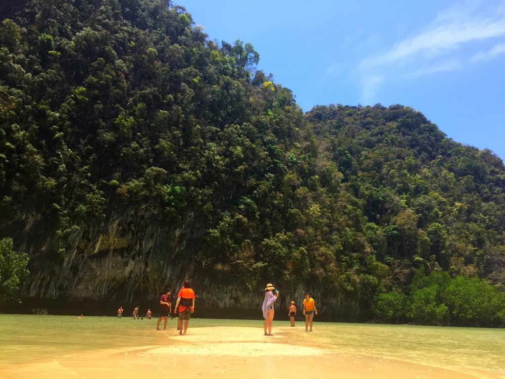 เราใช้เวลาเดินทางประมาณ 1 ชั่วโมง ก็ถึงเกาะห้องแล้วค่ะ ก่อนเดินเข้าไปเล่นน้ำเราจะต้องจ่ายค่าเข้าอุทยานฯก่อน คนละ 60 บาท ที่นี่ส่วนใหญ่นักท่องเที่ยวจะเป็นชาวต่างชาติ ได้แก่ จีน และฝรั่ง ซึ่งอากาศค่อนข้างร้อน