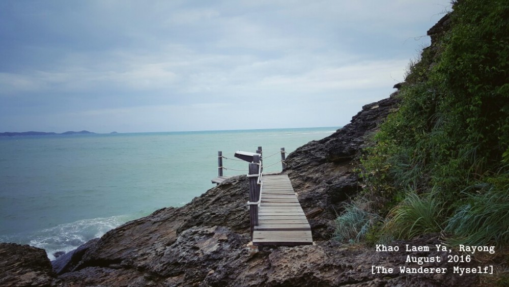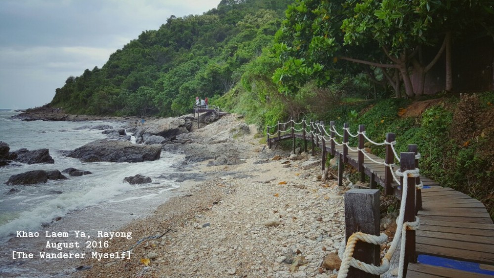 ทางเดินฝั่งชายหาด จะเป็นสะพานไม้ สลับกับโขดหินไปตามโค้งภูเขา