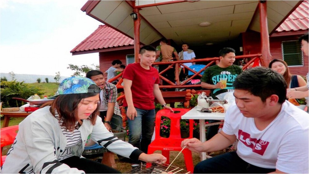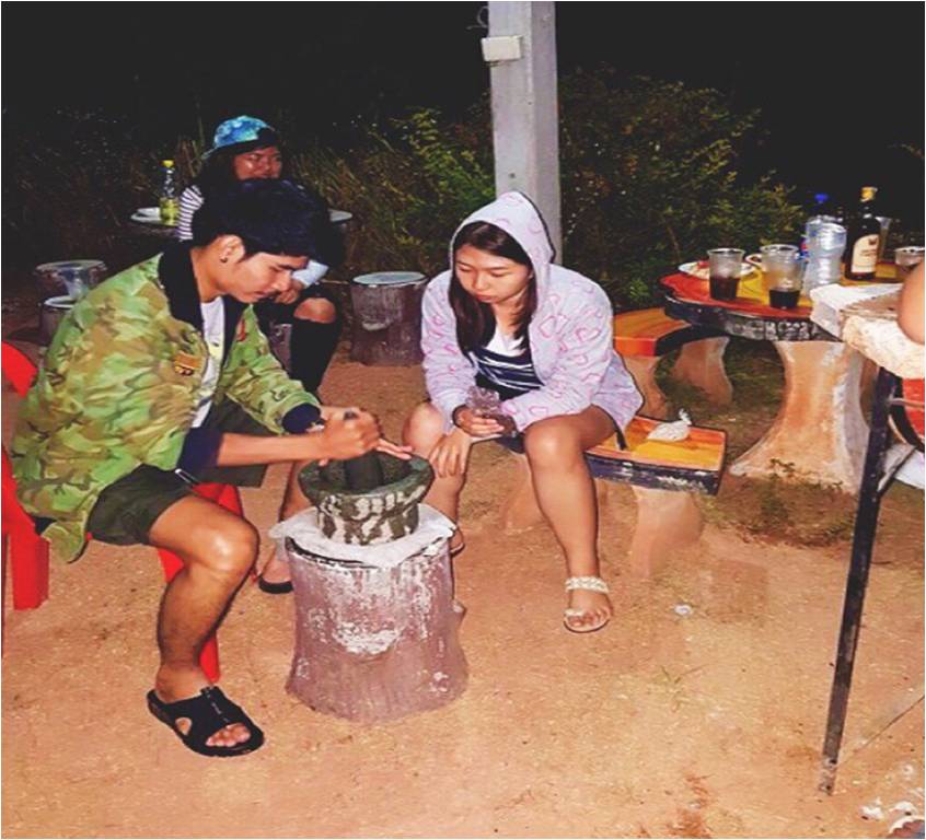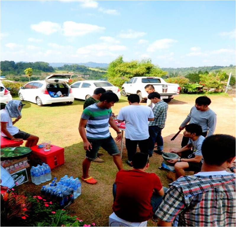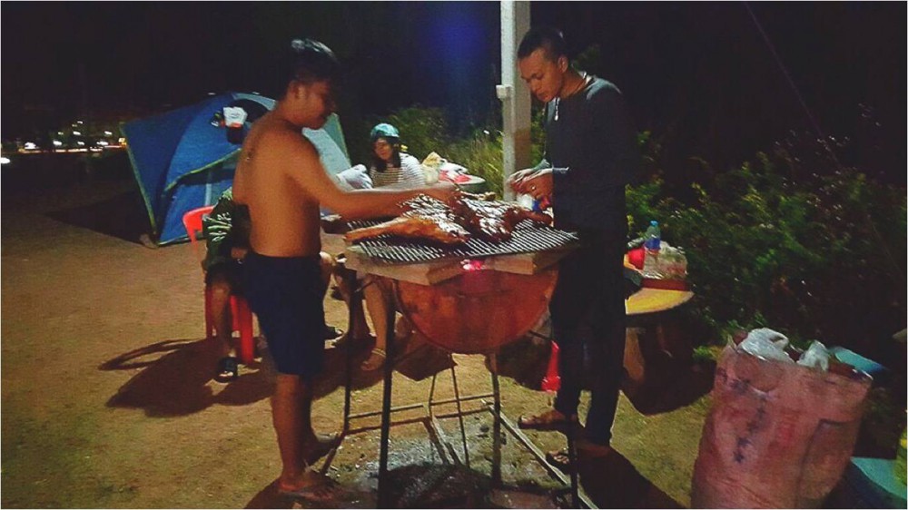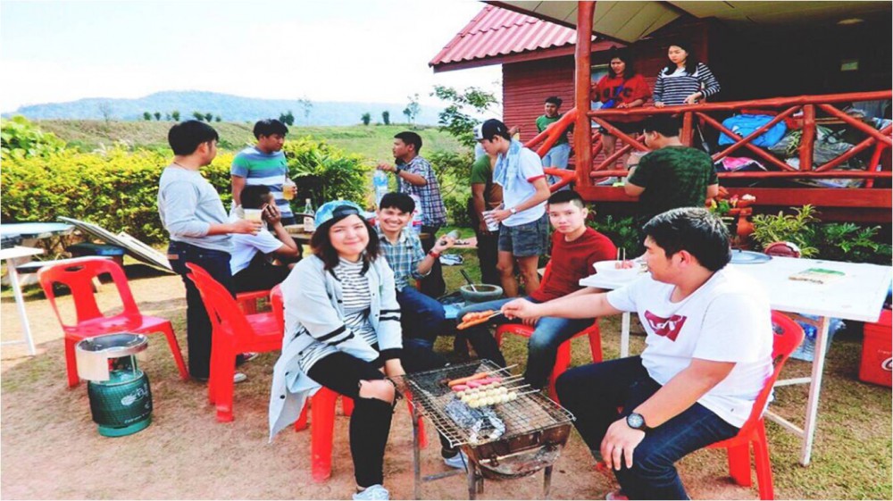 พูดถึงอากาศกันไปแล้ว เรามาพูดถึงเรื่องแคมป์ปิ้งของเรา และก๊วนเพื่อนกันดีกว่า เมื่อมาถึงทุกคนนำอุปกรณ์ทำแาหาร กระเป๋าเสื้อผ้าลงจากรถนำไปเก็บ จากนั้นทุกๆ ต่างพร้อมใจมาช่วยกันทำอาหาร กินได้บ้างไม่ได้บ้างก็ว่ากันไป