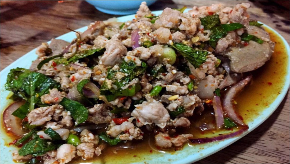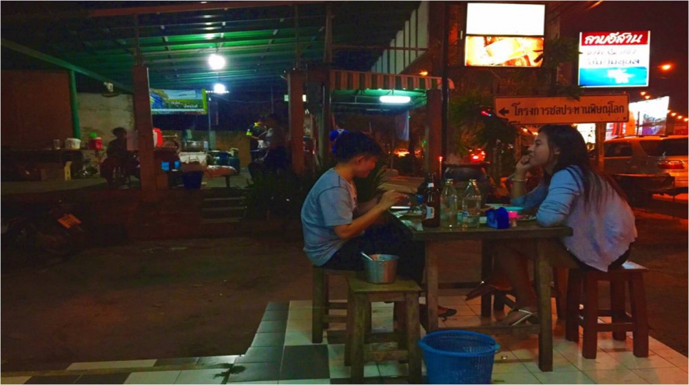 ให้ตายเถอะ...ตื่นมาอีกทีฟ้ามืดซะแล้ว มองนาฬิกาอ้าว!!! 19.35 น. นอนมาราธอนไปแล้ว ฮ่า ฮา ฮา...ตื่นมาได้ท้องก็ร้องเรียกหาอาหารเลย จำได้ว่าใกล้ๆ ที่พักมีร้านจิ้มจุ่มรสชาติดีอยู่ไม่ไกล ยิ่งอากาศเย็นๆ แบบนี้กินอะไรร้อนๆ ชุ่มคอดี ช้าทำไมสวมรองเท้าบิดลูกบิดเดินออกไปกดลิฟต์แล้วมุ่งตรงสู่ร้านลาบอีสานกัน เถอะ มาถึงก็ส่งอาหารทันที อาหารที่สั่งคือ หมูจุ่ม 1 ชุด พร้อมด้วยลาบหมู 1 จาน กินคนเดียวชิวๆ ริมถนนได้บรรยากาศยามค่ำคืนของเมืองพิษณุโลกดีค่ะ กินไปฟังเสียงรถขับสวนกันไปสวนกันมาเพลินดี