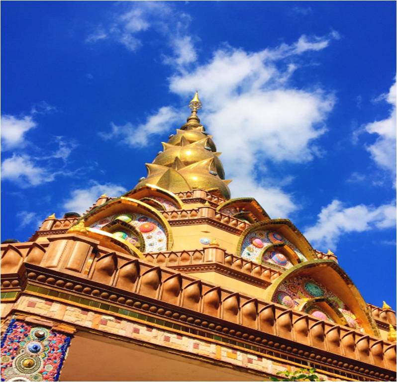 ชมทะเลหมอกกันจนอิ่มอกอิ่มใจแล้ว สถานที่ต่อไปของพวกเราคือวัดผาซ่อนแก้วค่ะ วัดนี้โดดเด่นเรื่องสถาปัตยกรรมและเจดีย์ที่ถูกตกแต่งประดับประดาไปด้วย กระเบื้องและเครื่องเบญจรงค์