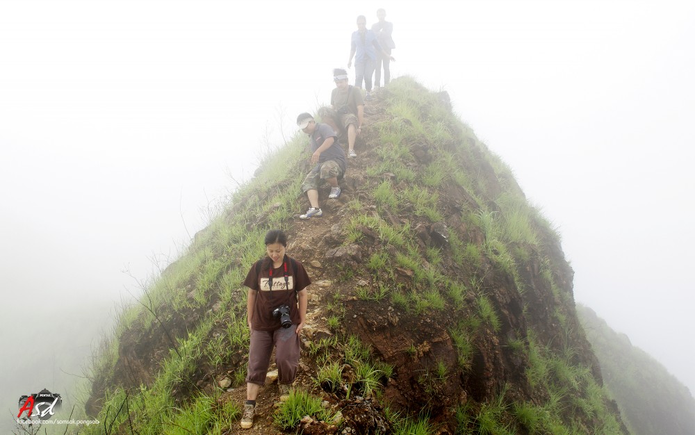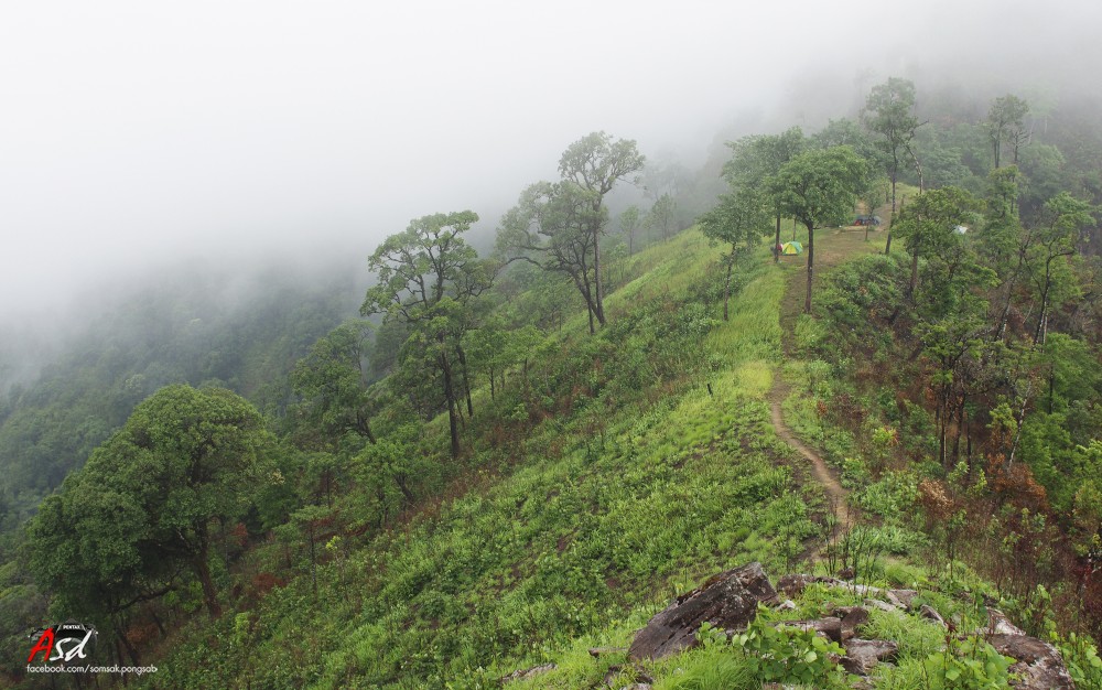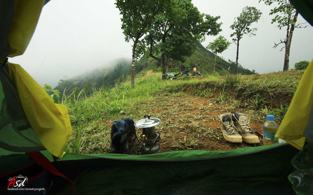 พอถึงจุดกางเต้นท์มีลมแรงมาก และมีหมอกฝนปกคลุม สลับกับฝนปรอยๆ ความหวังที่เราจะขึ้นสันคมมีดจึงริบหรี่ลงทันที เจ้าหน้าที่บอกอันตรายเกินไปถ้าจะขึ้นไปในตอนนี้ เราจึงแยกย้ายไปกางเต้นท์และนอนพักผ่อน ตื่นมาอีกทีฝนหมดแล้วแต่หมอกก็ยังมีอยู่ สรุปเราจะลุ้นไปขึ้นตอนเช้า