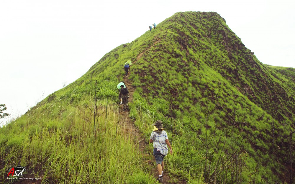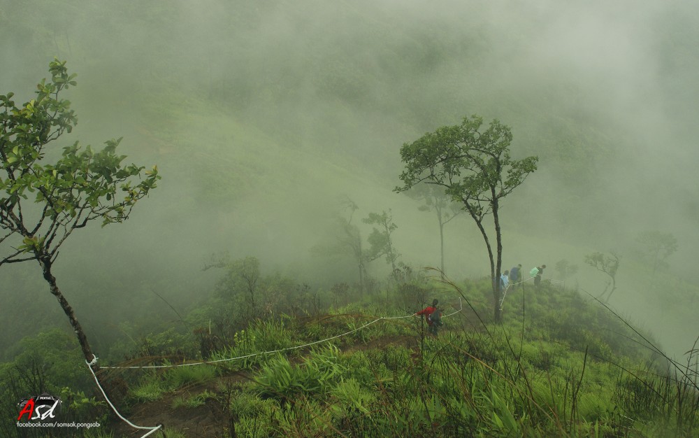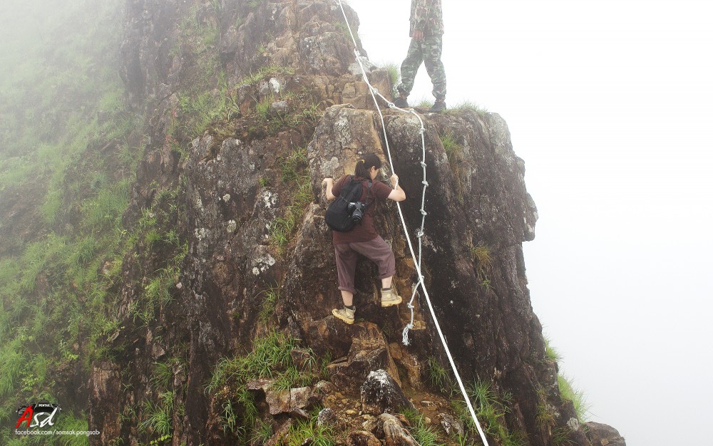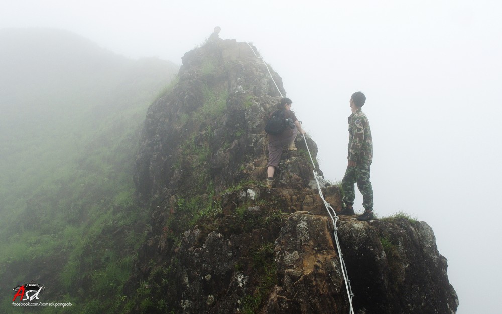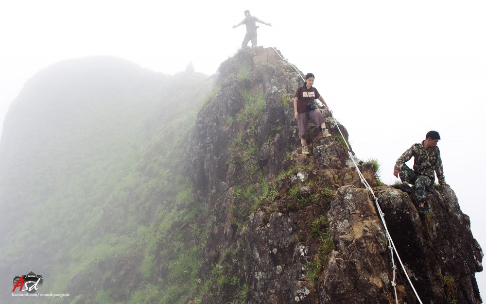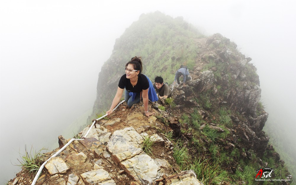 เมื่อพ้นสันคมมีดไปแล้วต้องเดินต่อไปอีกเพื่อไปจุดสูงสุดของเขาช้างเผือก ทางก็กว้างแค่ฟุตเดียว