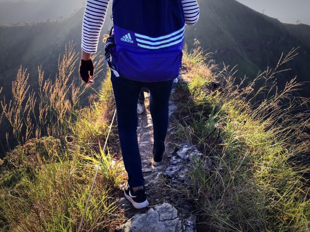 พักได้แปบนึง เจ้าหน้าที่จะเรียกให้ไปปีนสันคมมีดประมาณบ่า่ยสามครึ่ง ทางชันมากกกกกสองข้างเป็นเหวเดินไม่ดีมีไปหวัดดีอาก๊งที่สวรรค์ ปีนไปเรื่อยๆ
