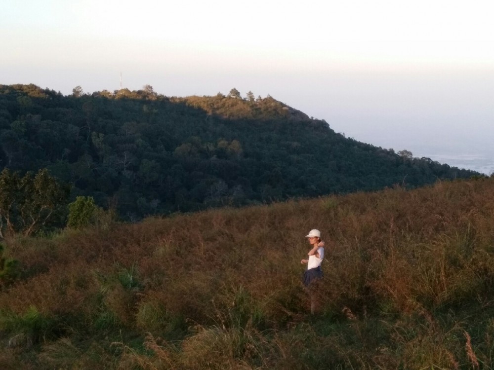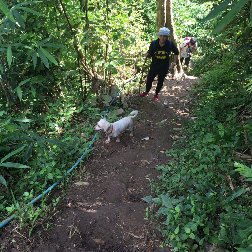 ระหว่างทางเจอนักท่องเที่ยวเดินสวนมา มีจังหวะทักทายตามประสาคนมีมนุษยสัมพันธ์ที่ดี สู้ๆ นะค่ะ ไม่ไกลแล้วเดี๋ยวก็เจอทางสบาย ไม่มีทางราบเลย ชันตลอด 555 พูดจบสังเกตสีหน้าผู้เดินสวน มีแอบงอนแถมหน้ามุ่ยนิด ๆ จึงหยอดไปว่า ไม่เท่าไรหรอกน้องขนาดพวกป้าๆ ยังเอาชีวิตรอดเล้ย 555 เจอน้องหมาวิ่งนำหน้าเจ้านายขึ้นเขามาด้วย น่ารักมากมาย