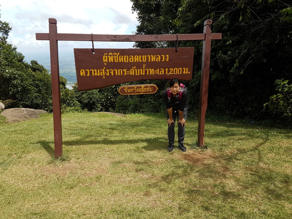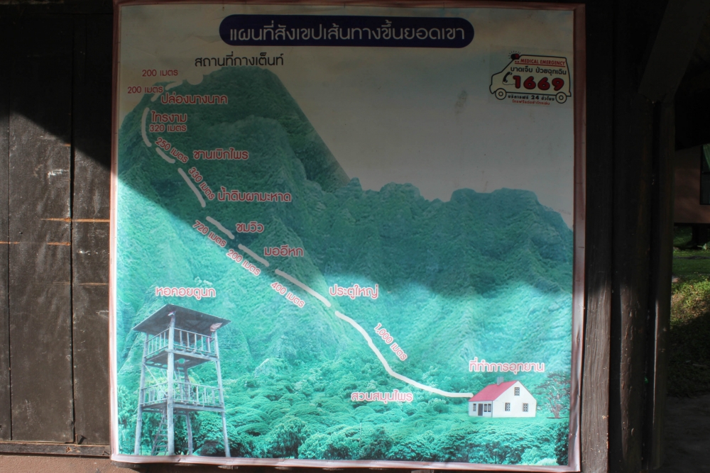 เดินไปเรื่อยๆมีป้ายบอกระยะทางว่าอีกกี่ร้อยเมตรจะถึงจุดไหน เวลาเห็นป้ายมันเหมือนมีแรงฮึดอะ แบบว่าเห้ยอีกแค่ 300 เมตรเองก็จะถึงจุดนี้แล้ว แต่ด้วยความที่มันชันมากไงแค่ 300 เมตรก็เหนื่อยเอาการอยู่เหมือนกัน จะบอกว่าพักทุก 10 เมตรก็ว่าได้ (มีโอกาสได้คุยกับคนที่เดินสวนลงมา เขาบอกว่าเมื่อวานพี่พักตั้ง 19 จุดแหนะ) คิดในใจเลยว่าตูผ่าน19 จุดนั้นมานานมากแล้ว 55555