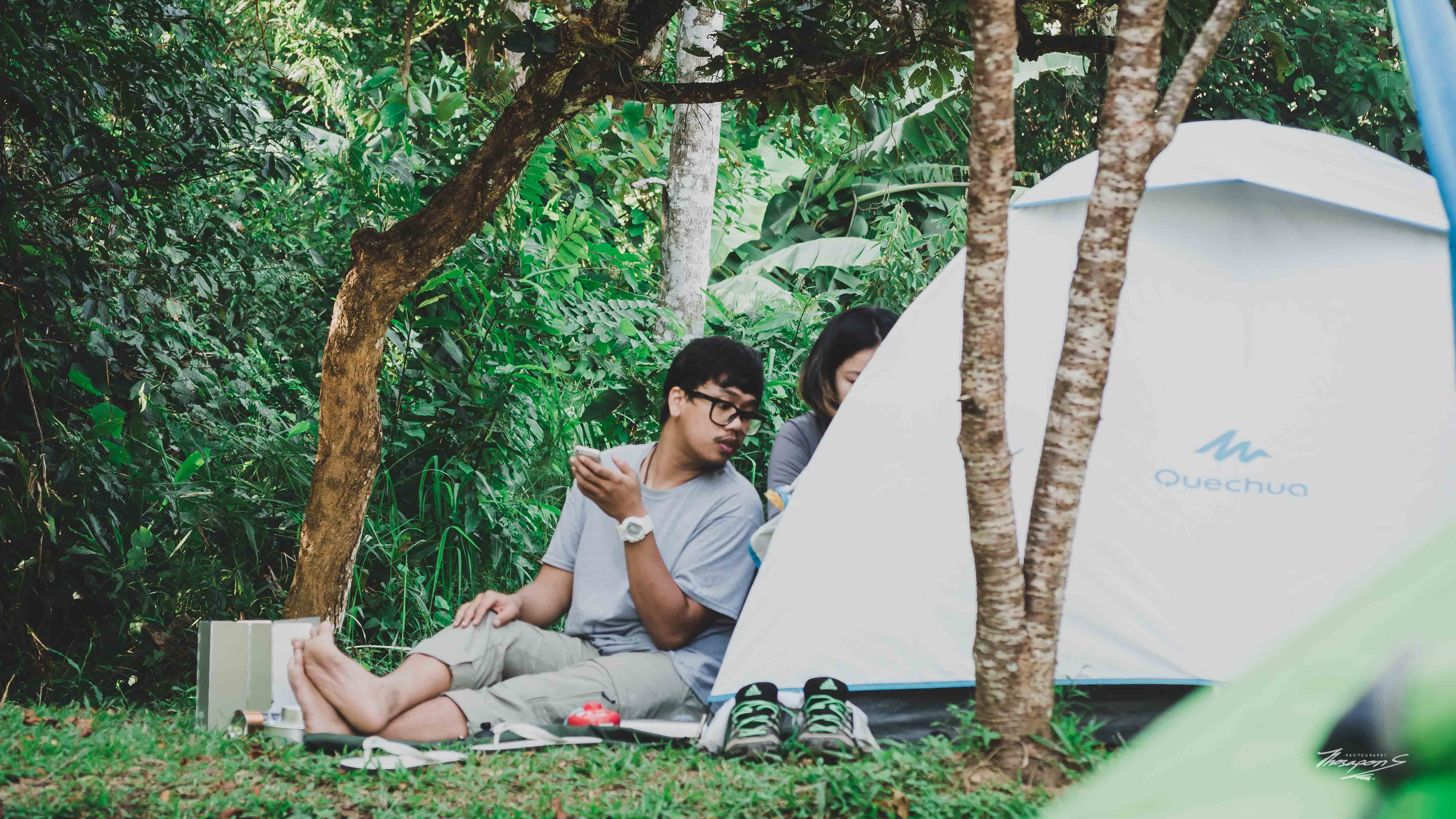 พวกเราเดินกันมาเรื่อยๆ ระหว่างทางผมก็เล่นมุกบ้าง 5 บาท 10 บาท ดีบ้าง แป็กบ้าง ตามสถานการณ์ บ้างก็ร้องเพลง ช่วยให้ในกลุ่มรีแล็กกันหน่อย จนเดินมาถึง "ไทรงาม" พวกเราพักกินข้าวเหนียวหมูที่ซื้อมากัน ซึ่งก็มีน้องคู่หนึ่งนั่งอยู่แล้ว แล้วน้องก็ถามว่า นี่ใช่พี่ที่เขียนรีวิวหรือป่าวคะ ผมก็คิดในใจอืมมมมม มีคนอ่านของเราด้วยหรอ ก็เลยบอกน้องไปว่า ใช่ครับ น้องก็ถามต่อ พี่มีเพจไหม ผมเลยตอบไปแบบหัวเราะไปด้วยว่า อ่อมี แต่พี่ไม่ได้อัพนานแล้ว ไม่มีใครดู ฮ่าๆๆๆ พี่ยังจำชื่อเพจพี่ไม่ค่อยได้เลย แล้วน้องก็ขำ สุดท้ายก็นั่งกินข้าวไปแบบเงียบๆ