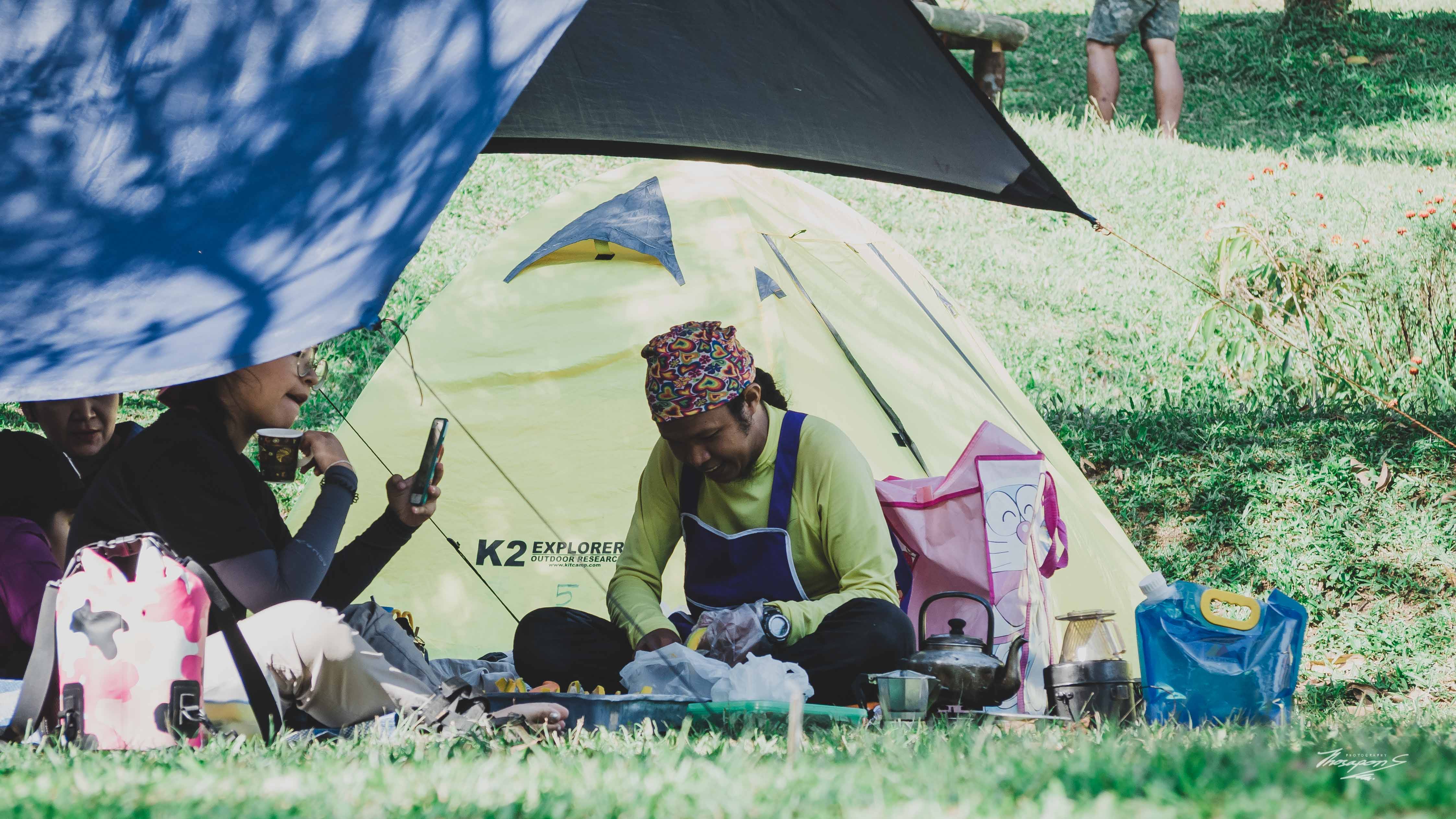 สุดท้ายพวกเราก็มาถึง ถึงแล้ว ถึงจริงๆ ลานกลางเต๊นท์ของเรา พวกเราใช้เวลาเดินประมาณ 4 ชั่วโมง มาถึงประมาณ บ่ายโมงครึ่ง พอขึ้นถึง ผมก็โยนกระเป๋าทิ้งเลยครับ นอนราบกับพื้นหญ้าเลย สักพักพอนึกขึ้นได้ว่า (เอ้ยยย โค๊ก รีบไปซื้อเดี๋ยวหมด เพราะบ่นกันตลอดทางอยากกินกันตลอดทาง) แล้วสมาชิกในกลุ่มก็ไปซื้อมาให้