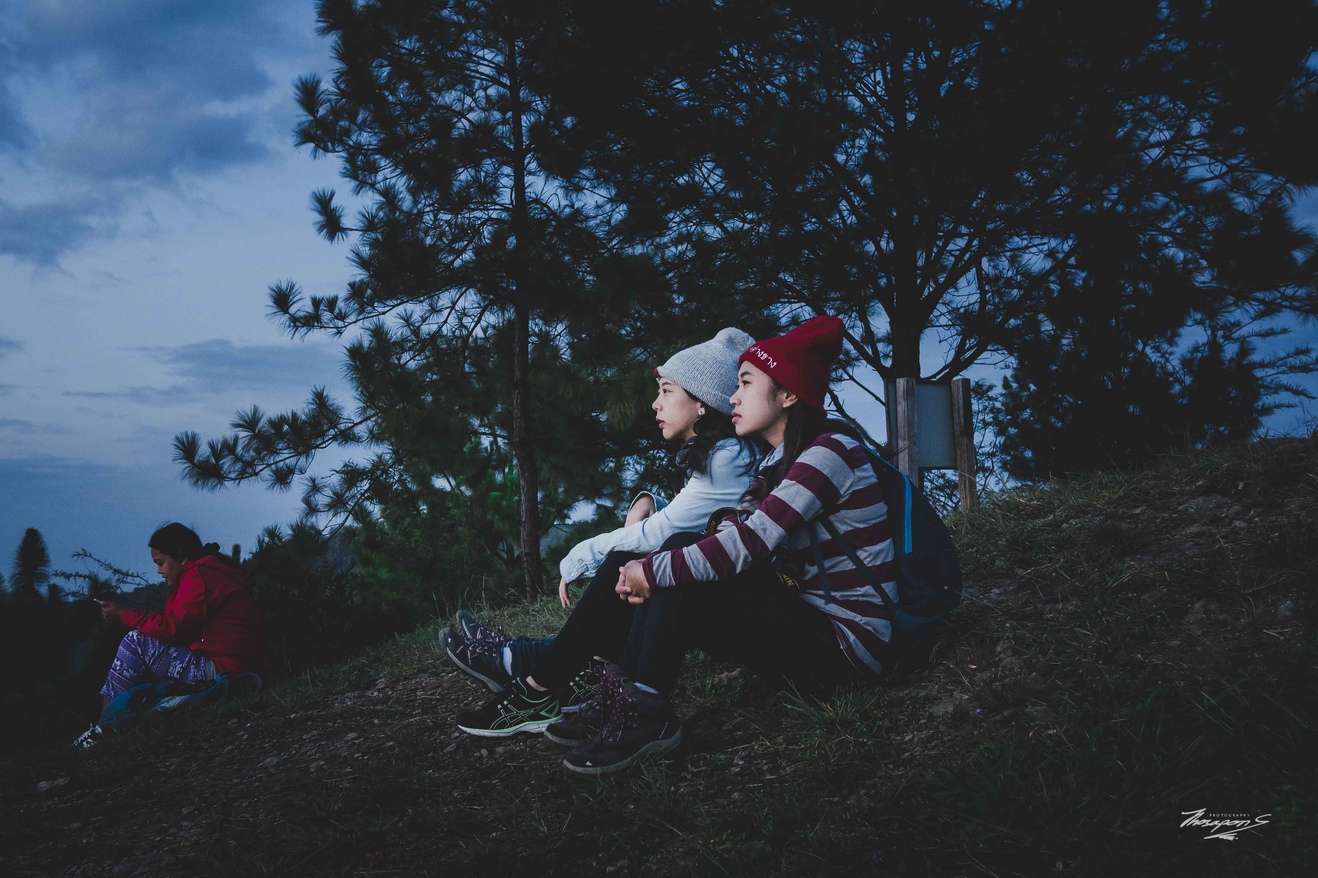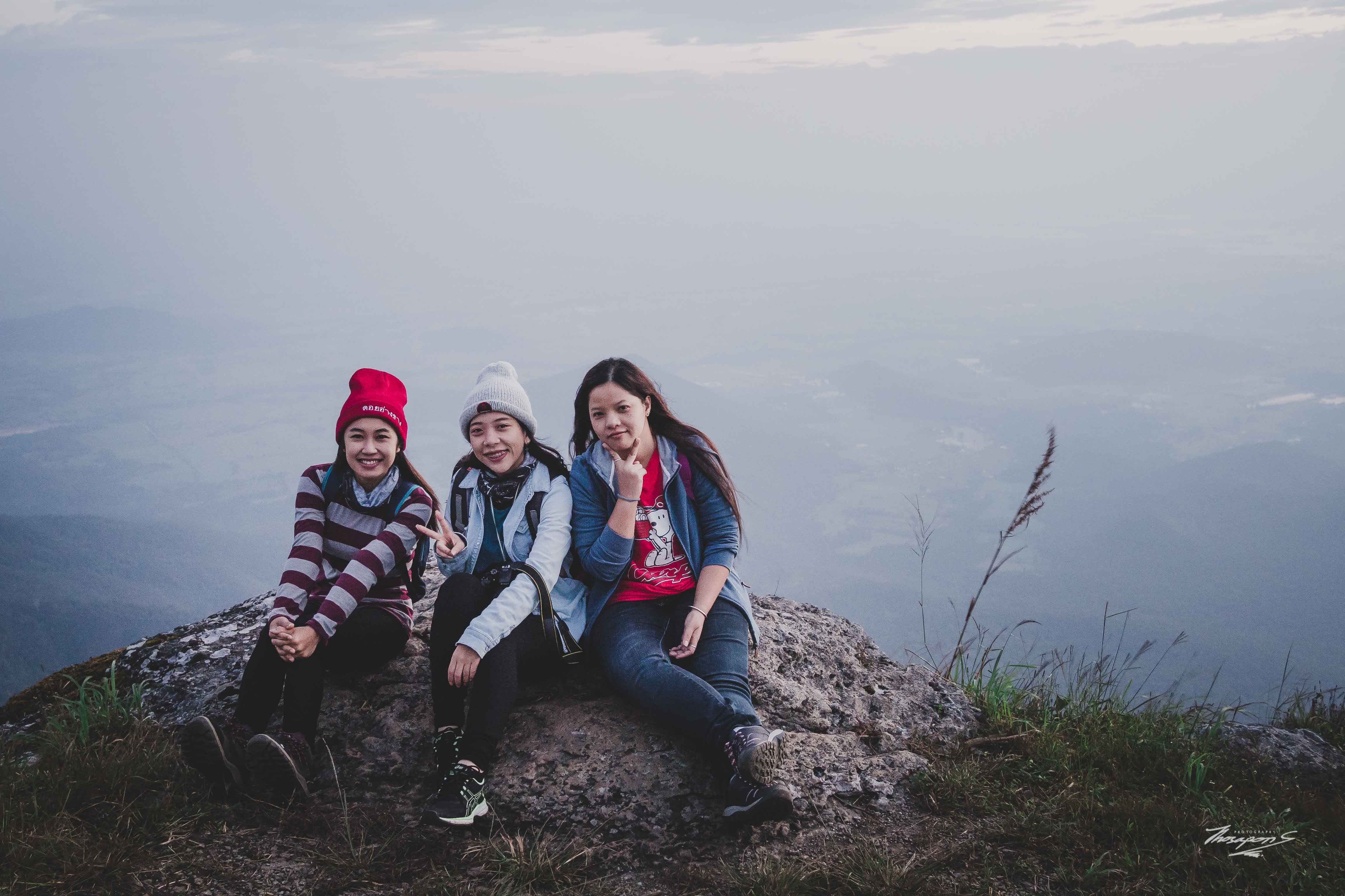 พอตกเย็นสัก 4 โมง พวกเราเตรียมตัวเดินขึ้นไปดูพระอาทิตย์ตกที่ยอดเขาแม่ย่า ระหว่างทางเดินไปยอดเขา เราก็ไปถ่ายรูปเล่นกันที่ลานจอด ฮอลิคอปเตอร์ กันสักพัก ก็เดินกันต่อจนถึงยอดเขา พวกเราก็หามุมถ่ายรูป บ้างก็นั่งพักรอดูพระอาทิตย์ตก