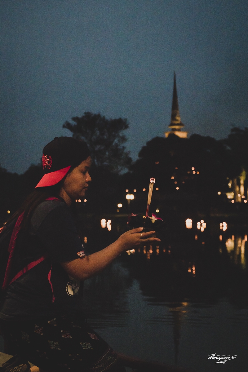 หลังจากนั้นพวกเราก็ต่างแยกย้ายกันไปอาบน้ำ หลังจากจัดการตัวเองเสร็จเรียบร้อยแล้ว พวกเราก็เดินไปกินข้าวที่ร้านค้าสวัสดิการณ์ ของอุทยาน โดยที่ลุงแกะมารอรับเราเราไปส่งที่ตัวเมืองสุโขทัย แต่ว่าตอนนี้เวลา 14.00 น. แล้วเราก็จองตั๋วขากลับไว้ 21.40 น. ซึ่งเหลือเยอะมาก เราก็เลยขอให้ลุงไปส่งพวกเราที่อุทยานประวัติศาสตร์สุโขทัย ซึ่งมีงานประเพณีวันลอยกระทงอยู่เลย