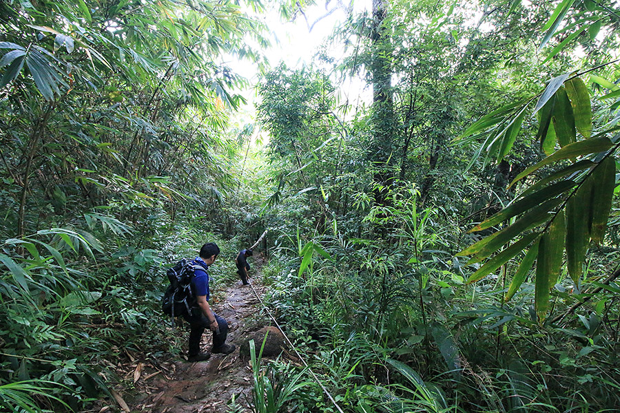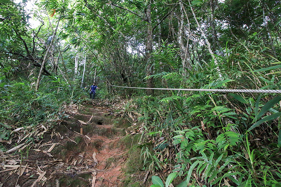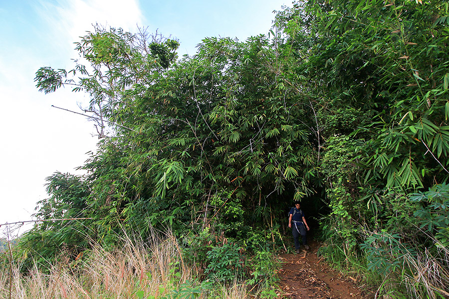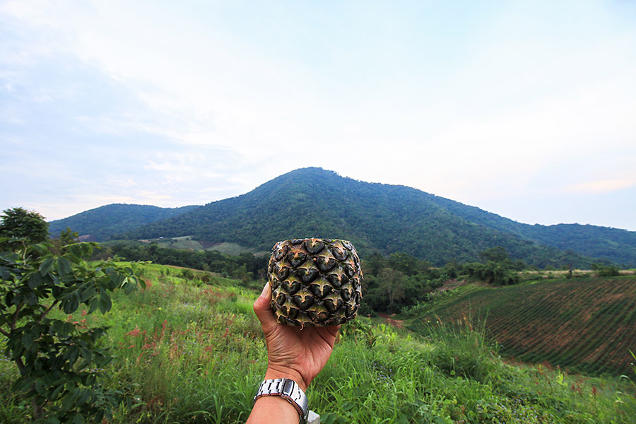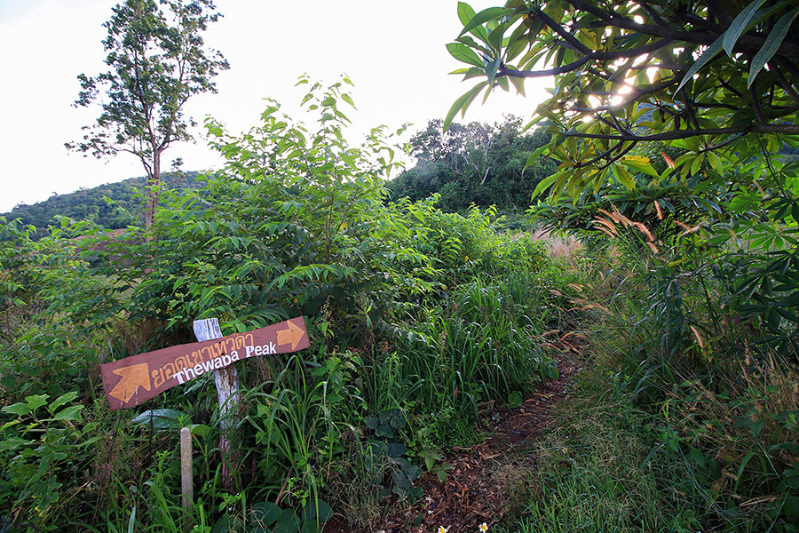 พอถูกทางแล้วก็เริ่มเลยสิ เสียเวลาทั้งกับทางช้างเผือกและหลงทางมาเยอะแล้ว ช่วงแรกเราเดินผ่านไร่สับปะรดกับสวนยางของชาวบ้าน สักพักก็เจอป้ายให้เลี้ยวขวา นั่นจึงเป็นจุดเริ่มต้นของจริง
