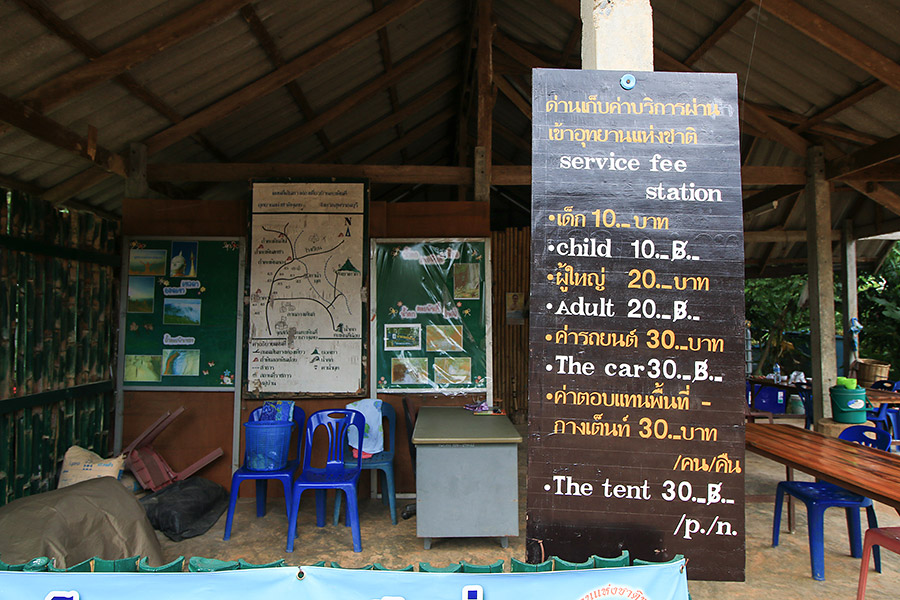 บ่ายสองสิบห้าจอดรถเอี๊ยดถึงหน้าด่านหน่วยพิทักษ์ที่ 1 ทางต่อไปยังที่ทำการอุทยานฯ เจ้าหน้าที่บอกว่าขึ้นทางนี้ถนนเละน่าจะลำบาก ให้ย้อนออกไป 5-6 กิโลเมตร จะมีป้ายบอกเลี้ยวไปเขาเทวดา ใช้ทางนั้นขึ้นง่ายกว่า