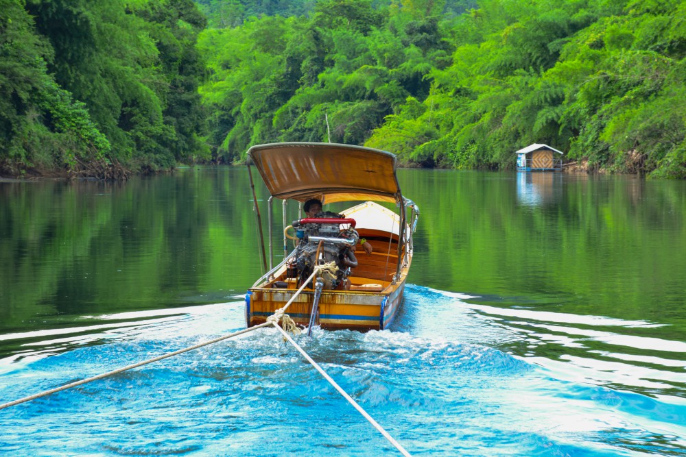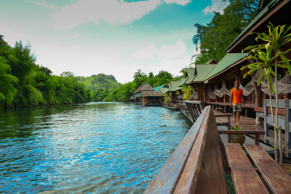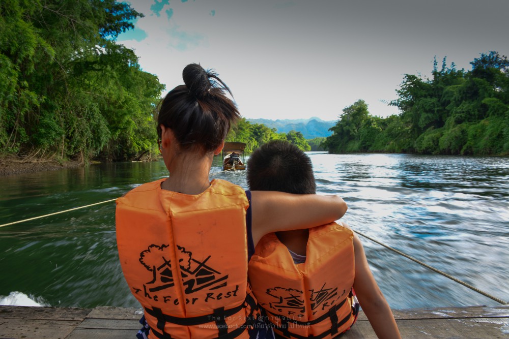 ว่าแล้วก็เริ่มเดินทางกันโล๊ดด...ออกจากกทม.เช้าหน่อย แวะรายทางมาเรื่อยๆ เข้าที่พักประมาณ บ่ายสามค่ะ ^^ ที่พักอยู่เลยน้ำตกไทรโยคใหญ่ไปประมาณ 10 กม.ได้ค่ะ มาถึงจอดรถด้านบน แล้วขนของไปด้านล่างเองนะค่ะ ที่นี่เค้าคิดราคาแบบแพคเกจค่ะ ผญ.คนละ 1200 เด็ก 800 รวมอาหาร 2 มื้อ เย็น เช้า บุฟเฟ่ต์ค่ะ เชิญทัศนากินกันตามสบาย และกิจกรรมลากแพ ถ้าเข้าที่พักเย็นจะไม่ได้เล่นแพนะค่ะ ลากแพก็คือ ให้เรานั่งแพใหญ่แล้วทางรีสอร์มมีเรือ ลากพาเราไปปล่อยต้นน้ำ แล้วพวกเราก็กระโดดลอยคอไหลตามน้ำมาเลย ขอบอกหนุกมากกก...น้ำไหลค่ะไม่ต้องกลัวจะจะเหนื่อย มีเสื้อชูชีพใส่ทุกคนคร๊าา ไม่ต้องกลัวอันตราย จะมีเจ้าหน้าที่มาดูแลเรื่องเสื้อชูชีพ ให้รัดแน่นๆ แล้วจะมีเจ้าหน้าที่คอยลอยคอไปพร้อมๆ กับเราด้วย ไม่ต่ำกว่า 7-8 คน...ว่าแล้วไปเจอที่พักกันเลย