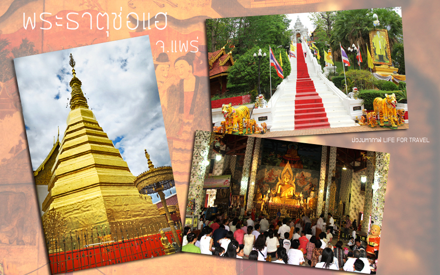 วัดพระธาตุช่อแฮ พระอารามหลวง เป็นวัดที่ตั้งอยู่บนเนินเขาเตี้ยๆ องค์พระธาตุช่อแฮเป็นเจดีย์ศิลปะเชียงแสนแบบแปดเหลี่ยม ทุกปีจะมีประเพณีการไหว้พระธาตุช่อแฮเป็นประเพณีที่ปฏิบัติสืบต่อกันมาอย่างช้านาน เป็นที่นับถือ เคารพศรัทธาของชาวเมืองแพร่เป็นอย่างยิ่ง