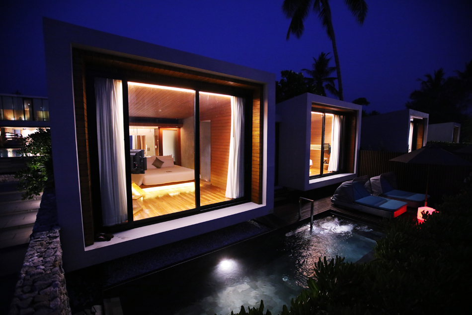 ห้องพักมี2 ชั้น ด้านบนห้องนอน ด้านล่างห้องนั่งเล่น และสระว่ายน้ำส่วนตัว