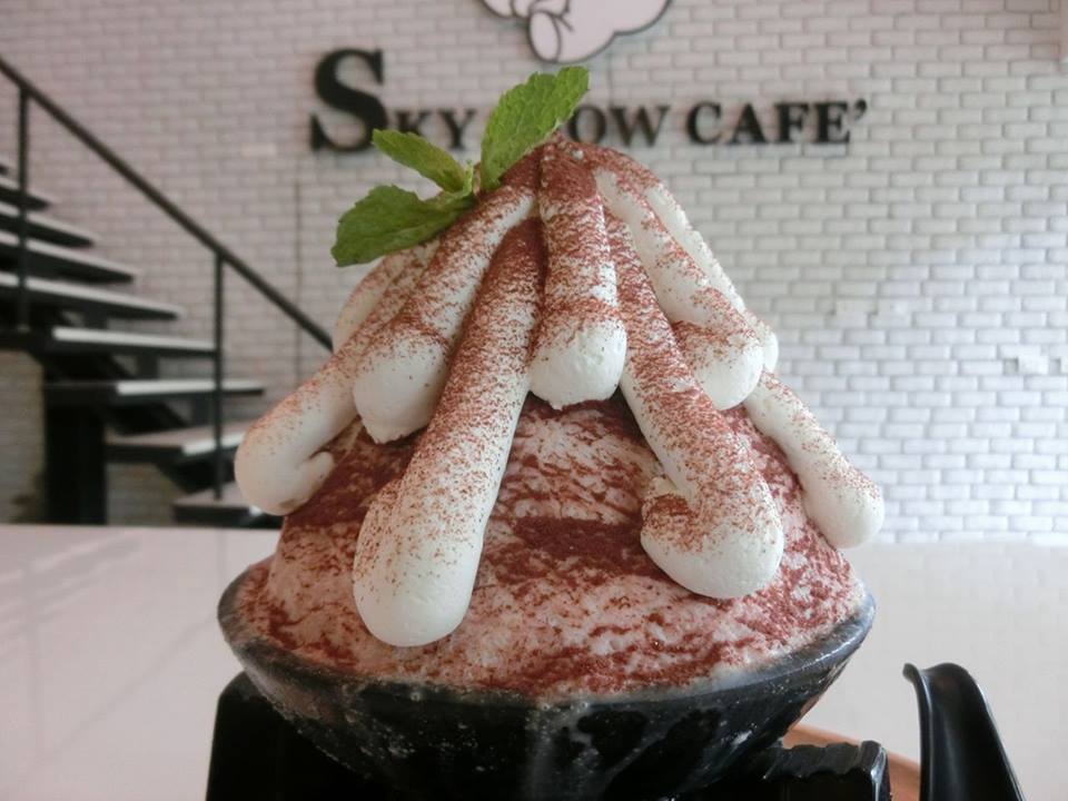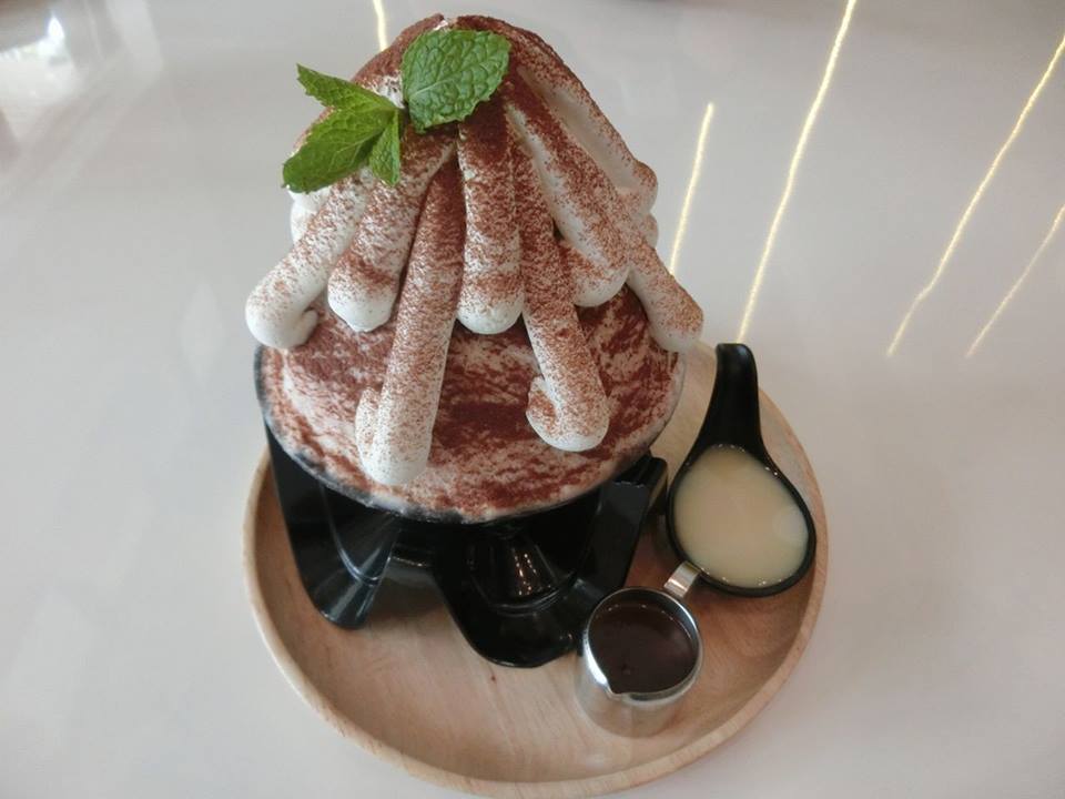 กาแฟที่เราได้ลองก็เป็นกาแฟลาเต้ที่มีบิงซูนมสดมาโป๊ะด้านบนและโรยด้วยผงโอวัลตินรสชาติไม่ธรรมดาเลยทีเดียวค่ะ