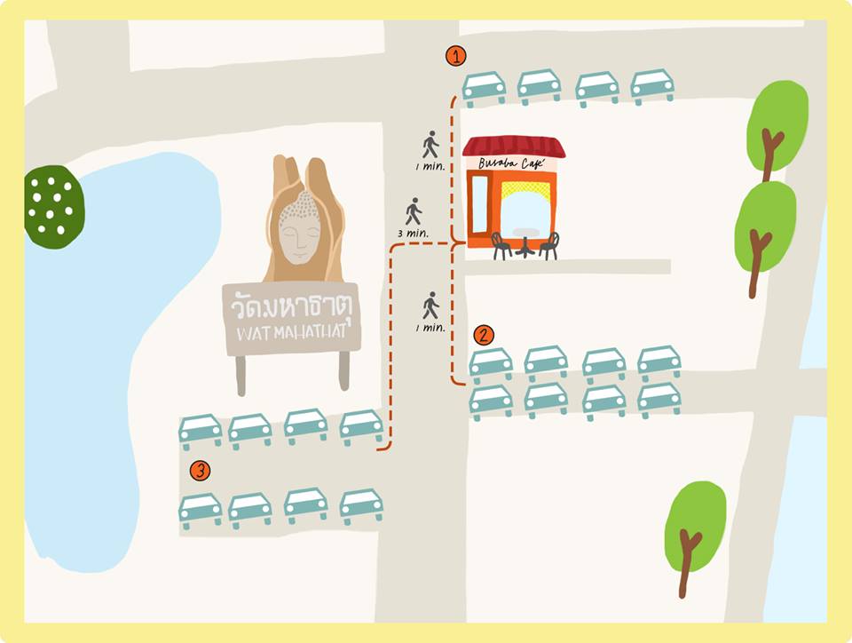หากใครที่ได้แวะมาไหว้พระหรือชมความงามของวัดมหาธาตุแล้วล่ะก็ต้องไม่พลาดที่จะแวะมาร้านนี้ให้ได้นะคะเพราะร้านนี้อยู่ตรงข้ามเยื้องๆกับวัดมหาธาตุนี่เองค่ะ