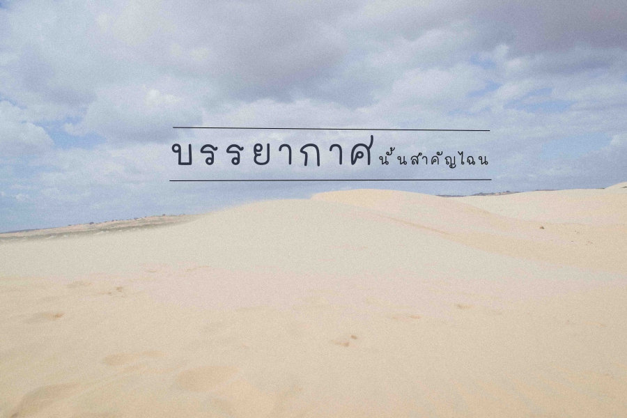 บรรยากาศไม่ใช่เป็นเพียงคำพูดหรือสิ่งที่สัมผัสได้แต่ทางร่างกายเท่านั้น แต่เป็นสภาพแวดล้อมที่สัมผัสได้ทางใจ ซึ่งมีผลต่อการเปลี่ยนแปลงอารมณ์ของจิตใจ บางครั้งลองถามตัวเองดูว่า บรรยากาศแบบไหนที่เราอยู่แล้วมีความสุข เผื่อว่าการออกไปสัมผัสบรรยากาศใหม่ๆ เราจะได้แรงบันดาลใจกลับมา