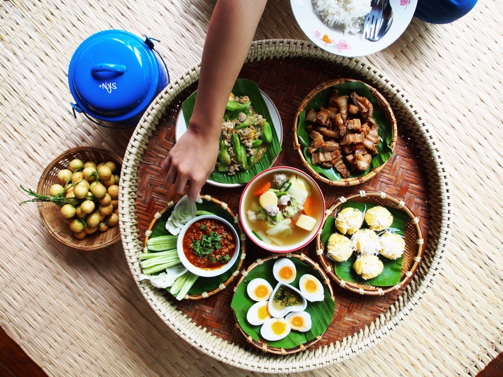ปั้นจักรยานกลับเราก็พักผ่อนกันตามอัธยาศัย พี่ติ๊กกูเข้ามาพูดคุยสอบถามเราว่าจะทานข้าวช่วงไหนดี สักพักพี่ติ๊กก็นำอาหารมา 1 ขันโตก พร้อมผลไม้ อาหารที่บ้านนต้นจั่นเป็นอาหารพิ้นบ้าน วัตถุดิบก็หาในหมู่บ้านเพราะที่นี่อุดมสมบูรณ์ด้วยวัตถุดิบชิ้นดีเลย เมนูเด็ดที่น้พี่ติ๊กก็บอกกับเราว่า เป็นน้ำพริกไข่เสียบ เป็นเมนูประจำของบ้านนาต้นจั่นเลย ใครได้ลิ้มลองแล้วติดอกติดใจไปตามๆกัน กับข้าวที่นี้ให้เยอะมากจนพวกเราอิ่มกันเต็มที่กันเลย พี่ติ๊กยังแจ้งกับเราว่าถ้าพรุ้นี้จะไปจุดชมวิวชมทะเลหมอกพระอาทิตย์ขึ้นต้องตื่นเวลา 04.30 น. จะมีพี่ไกด์มารับถึงที่พักเลย พวกเราก็กลงที่จะไปจุดชมวิว สักพักใหญ่พวกเราก็รีบอาบน้ำเข้านอนกันจะได้ตื่นเช้าพรุ้งนี้ทัน
