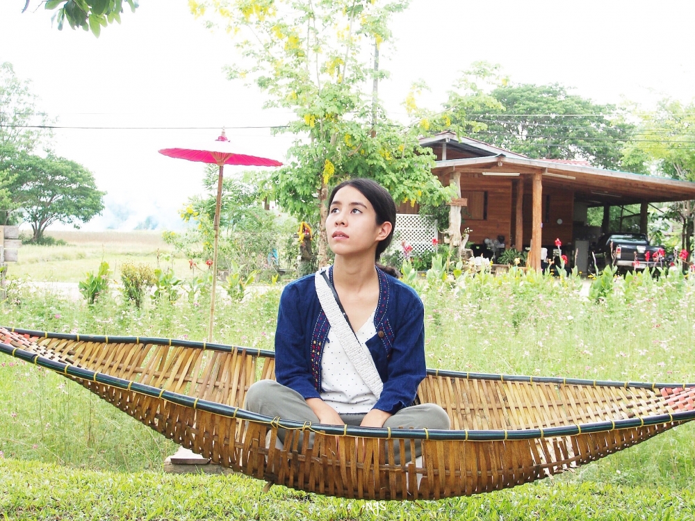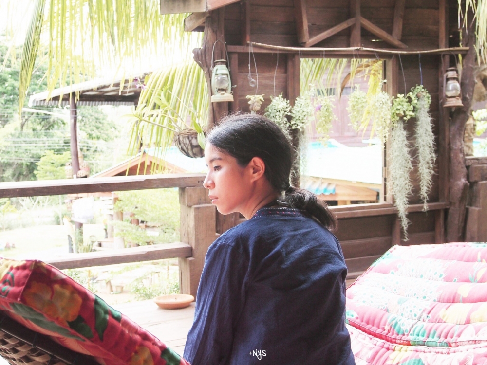 กิจกรรมต่อมาพี่ติ๊กพาปั่นจักรยานชมวิธีการทอผ้าใต้ถุนบ้าน ซึ่งพี่ติ๊กก็แนะนำการทอผ้าให้เราฟังและสาธิตให้ดู และยังให้เราลองฝึกทอผ้าด้วยตนเองอีกด้วย โดยสีที่นำมาทอผ้านั้นเป็นสีธรรมชาติทุกสีเลย