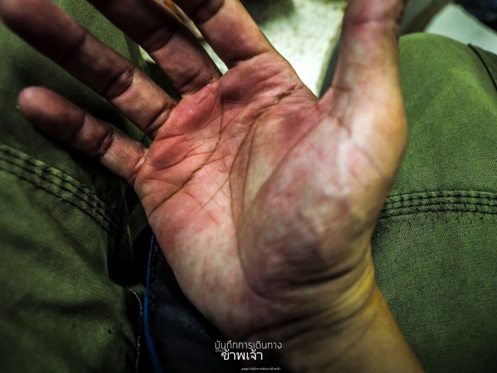 ขี่รถทางไกล ๆ ไม่ค่อยพัก ก็มักจะทำให้มือผมแดง ๆ คัน ๆ มือแบบนี้อยู่เรื่อย แม้ว่าจะใส่ถุงมือไว้ก็ตาม คงเพราะการสั่นสะเทือนต่อเนื่องเป็นเวลานานละมั้ง แต่ก็ไม่ได้อะไรมาก วันรุ่งขึ้นก็หาย มันแค่คัน ๆ นิด ๆ ดีกว่าขี่รถลุยฝนในหน้าฝนเยอะ เพราะนั้นทั้งคัน ทั้งเปื่อย 555