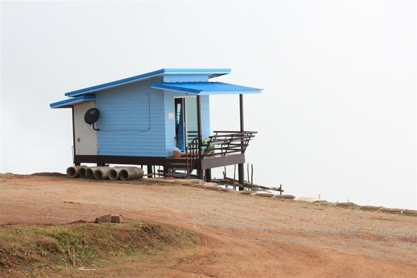 จึงสำนึกได้ว่าควรเก็บข้าวของไปหาที่นอนเอาดาบหน้า หอบผ้าหอบผ่อนออกมาพร้อมพายุฝนโหมกระหน่ำ เหมือนเกิดการจลาจลย่อมๆขึ้น ณ บนภูแห่งนั้น พร้อมเสียงโหวกเหวกโวยวาย ไม่ใช่จากที่ไหน เต้นท์เรานั่นเอง..... 55 โชคยังดีที่เจ้าของรีสอร์ทเค้าให้เข้าไปพักในบ้านที่ยังสร้างไม่เสร็จ พวกเราได้นอนในห้องพักสุดหรูพร้อมเครื่องมือช่างที่กองอยู่อีกนับสิบ พร้อมกับสมาชิกอื่นๆอีกสองเต้นท์ รวมกันแล้วนับสิบกว่าชีวิต แต่ก็ดีกว่านอนตากฝนทั้งคืน ไม่รู้เต้นท์อื่นชะตากรรมเป็นอย่างไร นอนไปลมก็กระหน่ำทั้งคืน