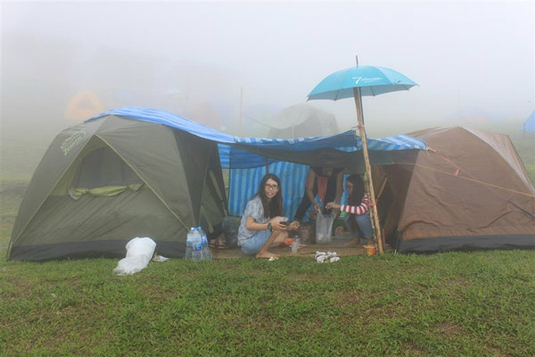 มีน้องๆใจดีเต้นท์ข้างๆมาช่วยกาง จากนั้นก็กลายเป็นมิตรภาพตลอดทริป ร่วมเผชิญชะตากรรมไปด้วยกัน 55